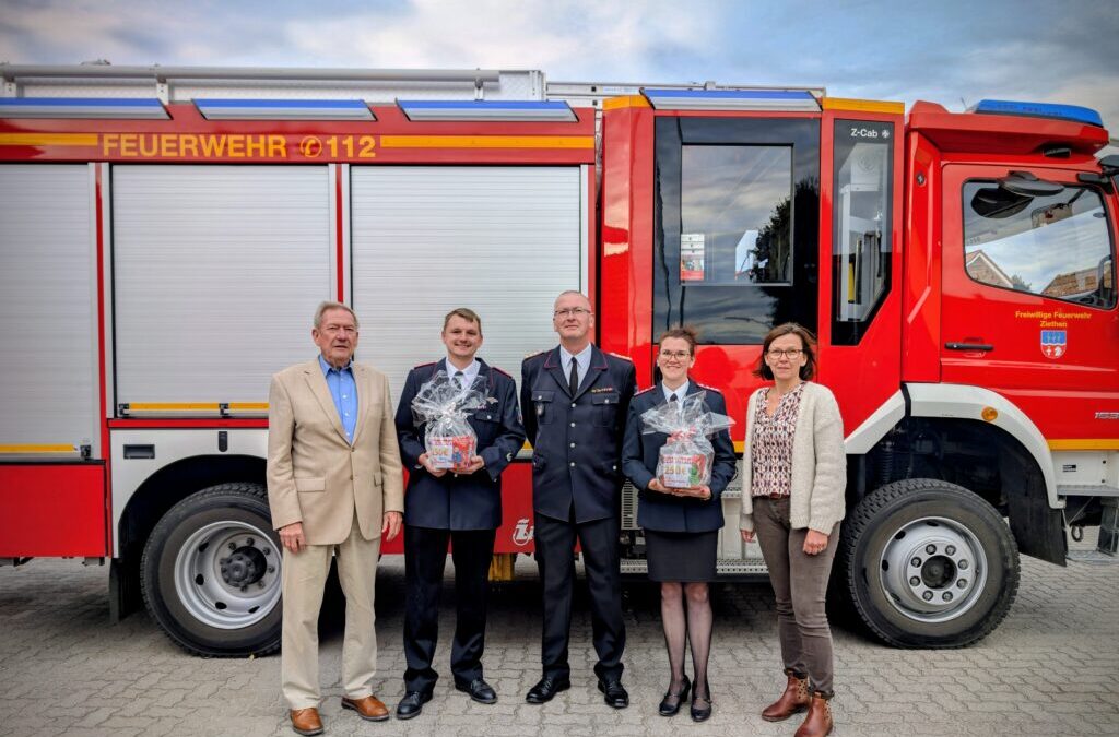 Für eine besondere Überraschung sorgte Amtsvorsteher Dohrendorff, als er den Kameradinnen und Kameraden einen großzügigen Scheck überreichte. Auch der Förderverein der Freiwilligen Feuerwehr Ziethen e.V. bereitete große Freude: Der 1. Vorsitzende Erich Rick und die 2. Vorsitzende Evelyn Salzsäuler-Nath übergaben sowohl an die Jugendfeuerwehr als auch an die Kinderfeuerwehr „Löschzwerge“ Gutscheine – sehr zur Überraschung und Begeisterung der Verantwortlichen und der Nachwuchsfeuerwehr.