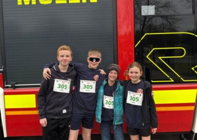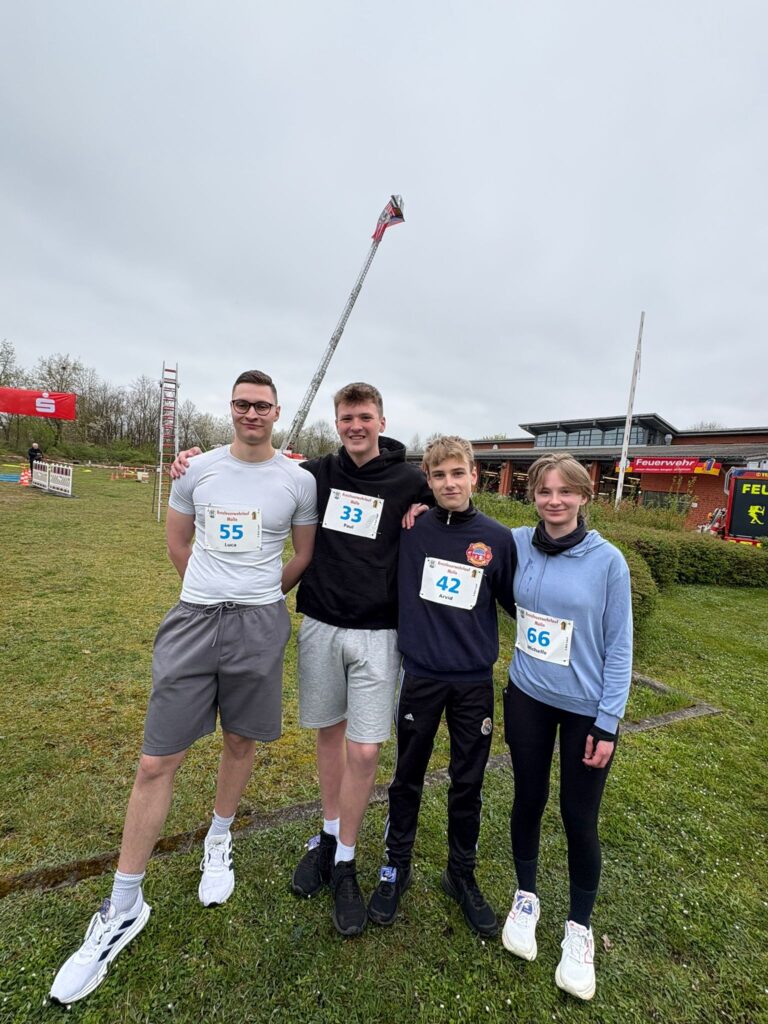 Anton, Milla, Juna und Thies rennen ihre 2,8 km mit maximalem Einsatz – jeder Wechsel sitzt, jeder Meter zählt. Das ist Team-Power !